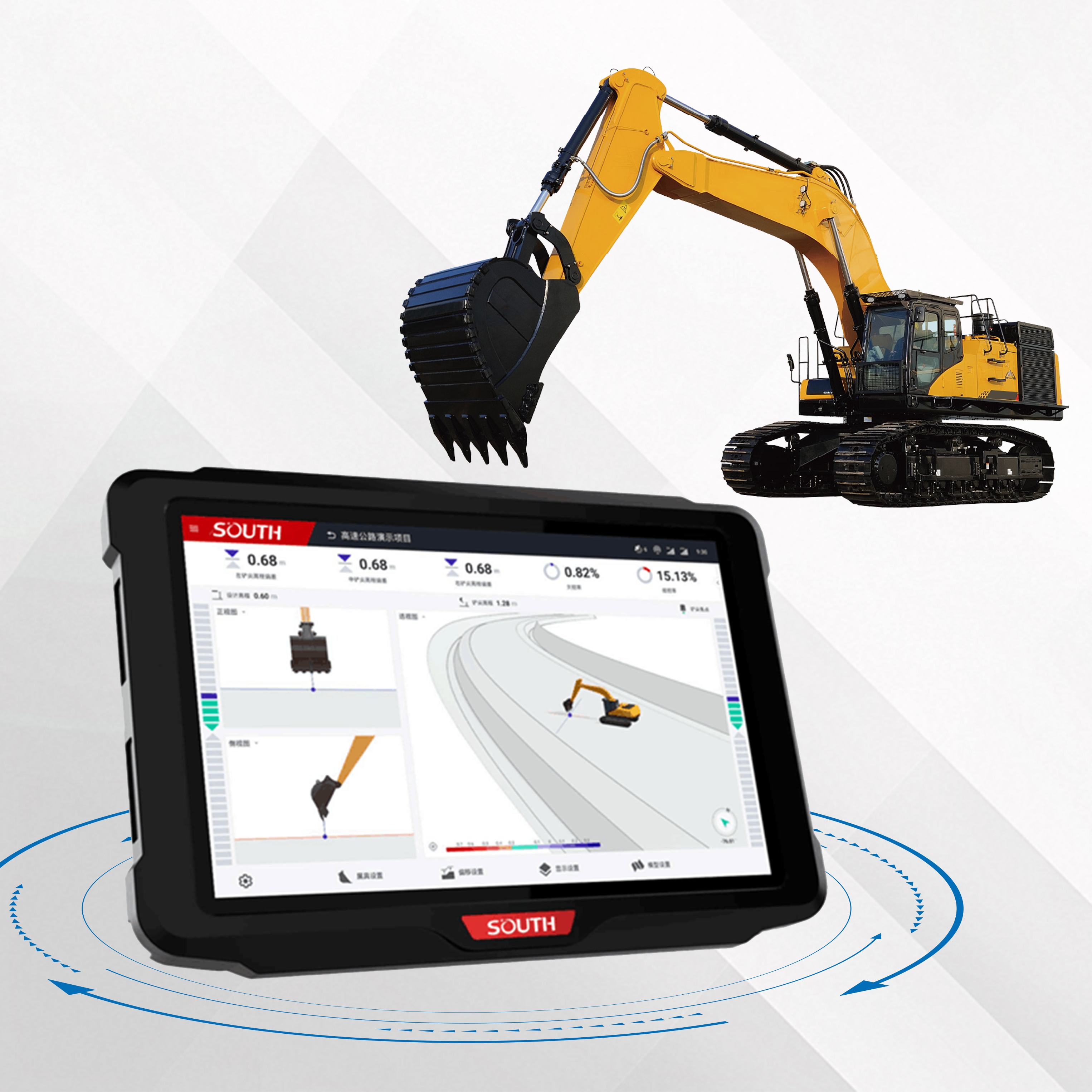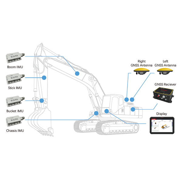 South Intelligent 3D Excavator Guidance System is based on GNSS high-precision positioning and tilt sensor fusion technology. By integrating surveying and engineering design data, the system delivers real-time operation guidance against design surfaces. The bucket tip’s horizontal and elevation accuracy can reach ±3 cm, optimizing construction quality, improving efficiency, and significantly boosting productivity.